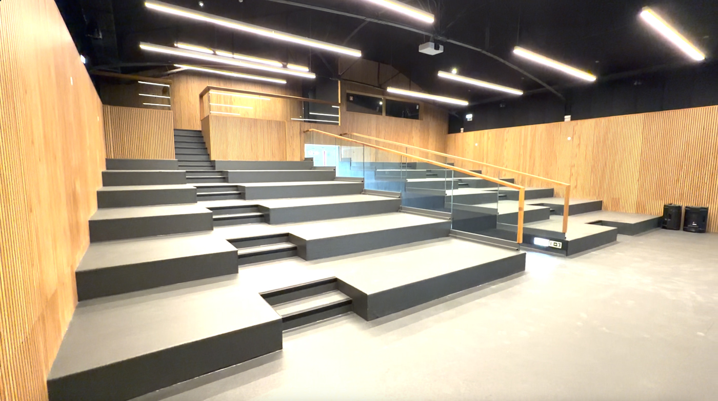 - Theatre created from the old factory engine room, with opportunities for students to perform on stage and seating for 175 people